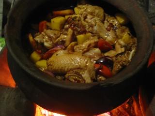 - If using pork only, make sure you occasionally add half a cup of water since pork dries up faster. If chicken only, don’t add water since the fowl’s natural juices make water less necessary. But check now and then to make sure your stew doesn’t stick to the pot.