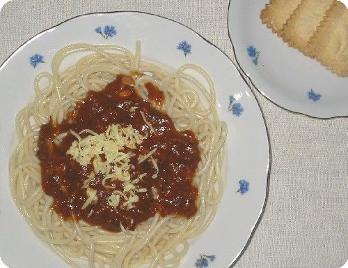 Back to the saucepan, gradually pour the spaghetti sauce, add more herbs and the sugar then stir gently. Apply high heat till the mixture thickens. Pour in more water, stirring only after the pan simmers, then sprinkle around 8-10 tbsp. of grated cheese. Stir thoroughly, add the rest of the olive oil, simmering for another 5 minutes then turn off heat. Cover saucepan and let stand for around 15 minutes if your guests or your hunger pangs can wait.