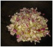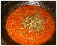 In a large saucepan, heat half of the oil then fry onions till caramelised. Add garlic, stirring gently till it softens. At this point the kitchen will attract attention through the aroma alone. Be prepared to entertain anyone who drops in because the sauce won’t be ready for another 30 minutes, at the very least.