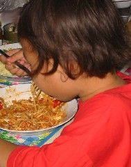 Dinner was served around 7.30 pm. Not bad, considering that just an hour beforehand, I was still on the road. L’s verdict: An excited “manyaman” (delicious!) after getting over the shock of realising the dinner was really meant for her, to which her parents agreed. My mom and auntie were very satisfied. From unsolicited feedback a few days later, I found out from the neighbours across the street that it was the best spaghetti they ever tasted. That’s coming from folks who are more discriminating. However, that does not really compliment my cooking skills but indicates what kind of spaghetti those who are not accustomed to pasta commonly eat in our town. How I liked it: Ok, but I didn’t really get to sit down for a meal that evening, having just eaten spaghetti from the clown’s restaurant. The next morning, I adjusted the sauce by adding more olive oil, onions, garlic, fresh tomatoes, plain tomato sauce, Parmesan cheese and of course, a good amount of dried herbs.