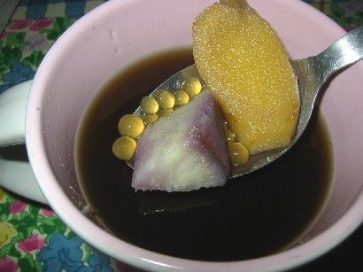 Lola’s salabat always had camote (sweet potato, Ipomea batatas). I assumed she put it into the brew for us children to have something to munch on or perhaps to neutralise the too-spicy taste of ginger. But recently, I found out that I assumed wrong! Camote is not an add-on but an essential ingredient of salabat! Sago (tiny tapioca pearls) can be added too. This was an interesting discovery which needed a little more research. Was it just our family or did people from our town have salabat the same way?