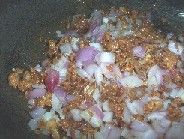 Over high heat, add the onions to the garlic and ginger, stir gently then lower heat until the onions have caramelised.