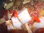 After caramelising the onions, add the diced tomatoes, sweat for five minutes over high heat while sprinkling approximately half a teaspoon of salt, then break up with a spoon. Pour a bit of water just enough to simmer on low heat. Add the potatoes and whole chillies (later, if you don’t like it too spicy). Keep on adding water if it’s too dry.