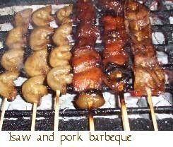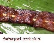 What at first seemed like skewered wafers akin to uncooked prawn crackers are actually squares of pork skin with the fat trimmed off, cooked adobo-style then grilled. What results is a tender yet chewy morsel of meat which hints at chicharon except that it’s not puffed. This is said to be a relatively new addition to the line of barbeques. The current price is PhP 5.00 per stick.