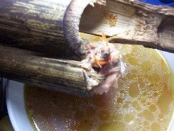 Today, 11 December is Pampanga Day. It is the only province founded in 1571 by the Spanish conquistadores, the same year as the capital of Manila. On its 434th anniversary, Pampanga is both old and new. In our cuisine, we see obviously Hispanic-influenced food like turrones de casoy and tamales. We also have American recipes like pies and tarts. There are new innovations such as adobong balut. Yet the age-old ways remain. One of these is using bamboo tubes as cooking vessels. This is very Southeast Asian. Look at nasi lemang which boo_licious featured recently. There’s also Wena’s bamboo chicken.